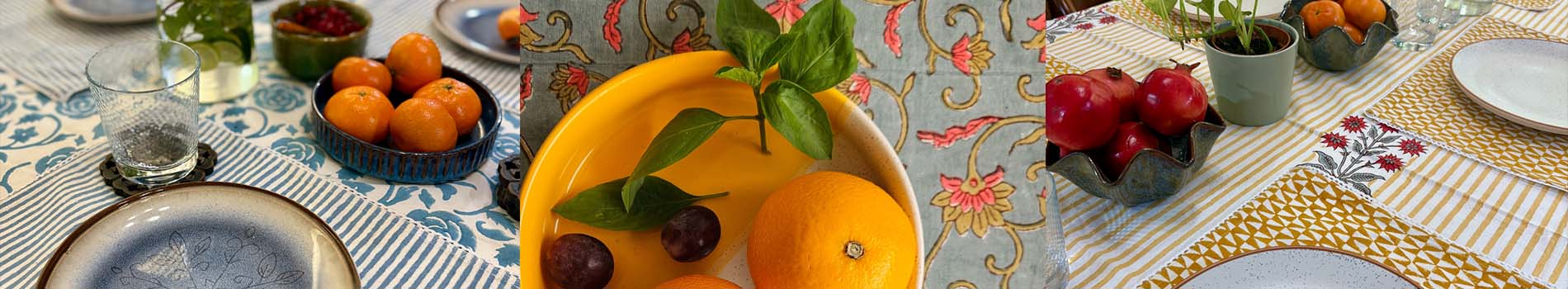 Explore the range of hand block printed table cloth, embroidered table runners for 6 and 8 seaters. Smart and connected to our roots.